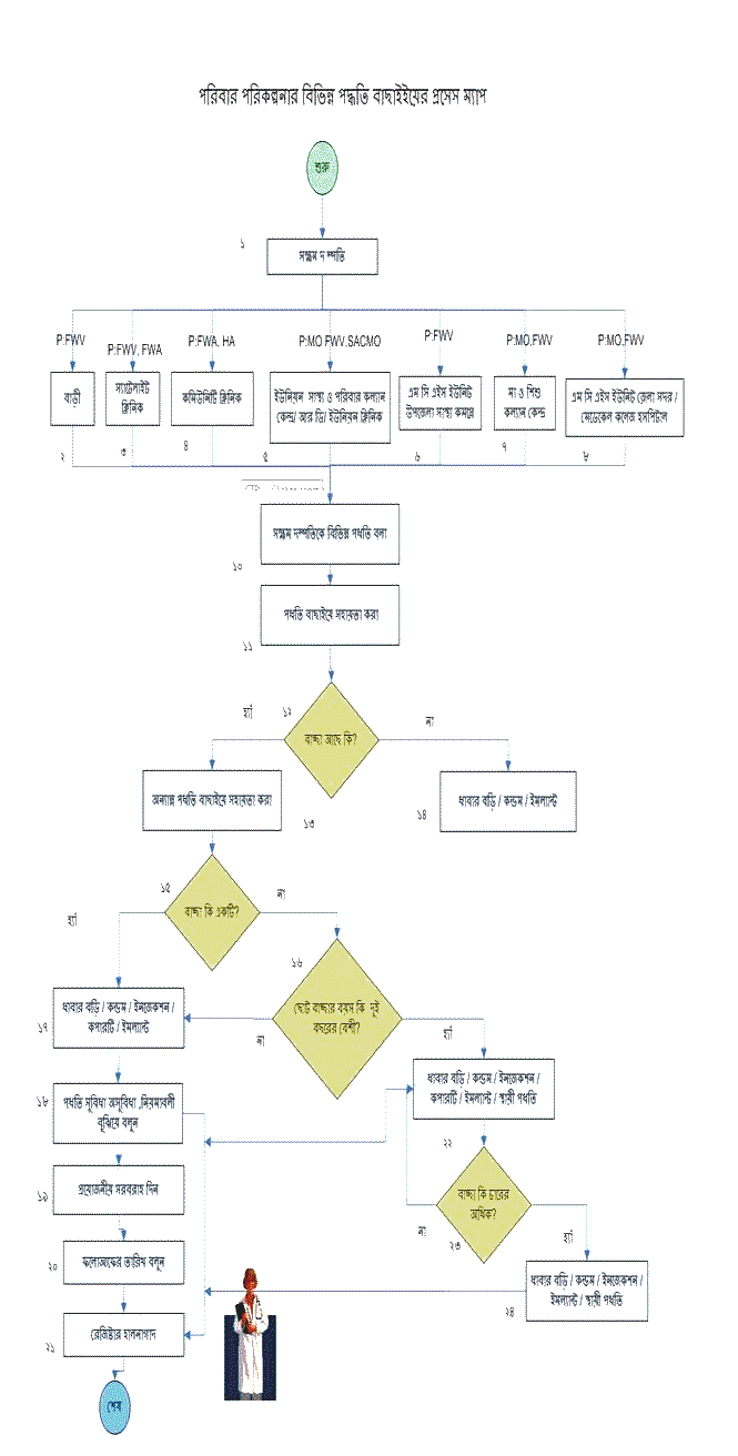 পরিবার পরিকল্পনার বিভিন্ন পদ্ধতি বাছাই এর ম্যাপ
